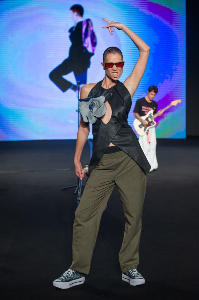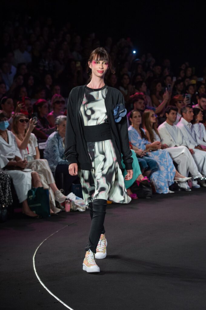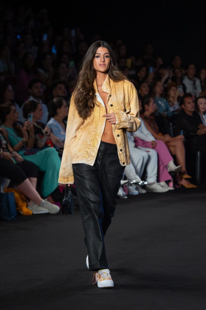 La pasarela abrió con una atmósfera ritual: siluetas envolventes, tejidos que parecían respirar con la piel y colores terrosos que remitían a lo orgánico.