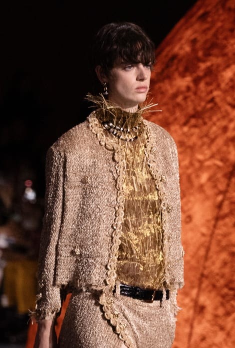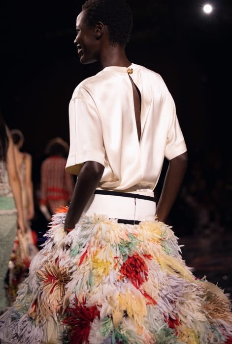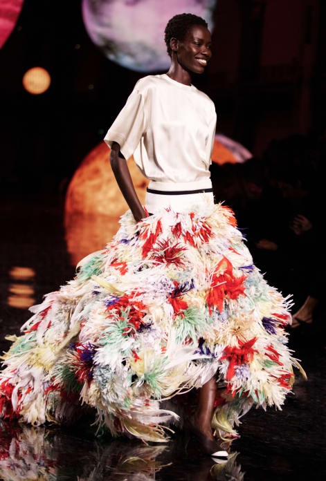 El desfile culminó con un estallido de color: la modelo Awar Odhiang apareció con una falda a modo de una explosión de tweed multicolor que sintetizaba toda la energía del nuevo Chanel.