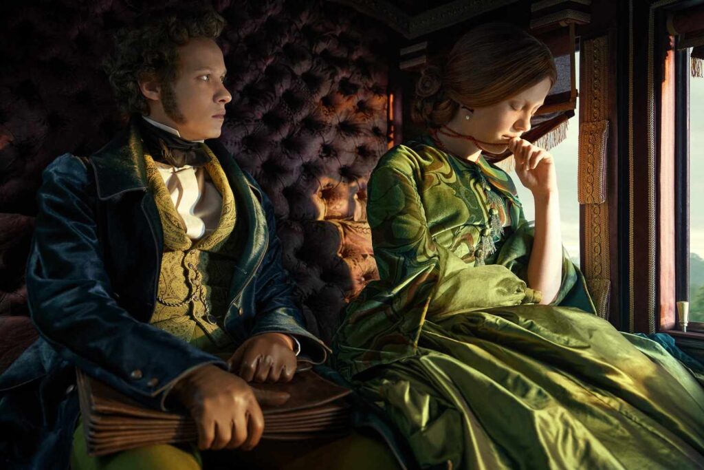 Dentro de este universo minucioso, inspirado en una Inglaterra victoriana reinterpretada —recordemos: es un relato fantástico, no un documento histórico—, destaca el trabajo de Kate Hawley, diseñadora de vestuario de Frankenstein. Su aproximación estética se inclina por una paleta saturada y pictórica, un gesto estilístico que se aleja de los tonos opacos y empolvados del siglo XVIII, época en la que se sitúa la novela original.