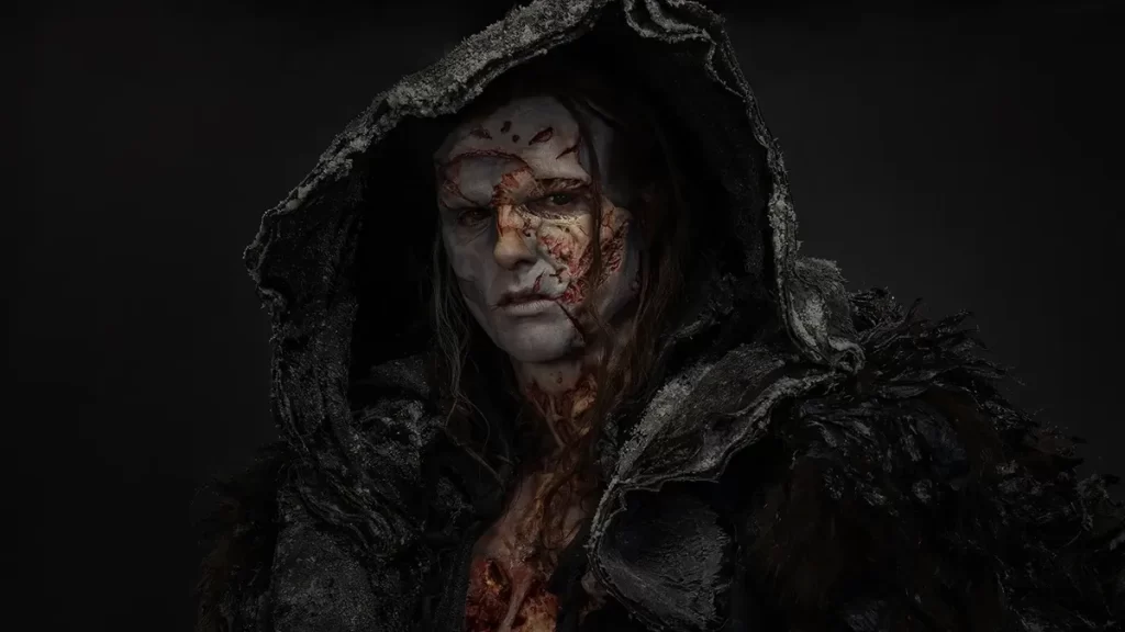 Jacob Elordi, encargado de dar vida a la Criatura —nos resistimos a llamarlo “monstruo”—, inicia su construcción desde las prótesis y ensamblajes creados por el artista Mike Hill. Desde allí, el vestuario replica este principio: piezas que se superponen por capas, una piel multiplicada, fragmentos que conviven en un solo cuerpo.